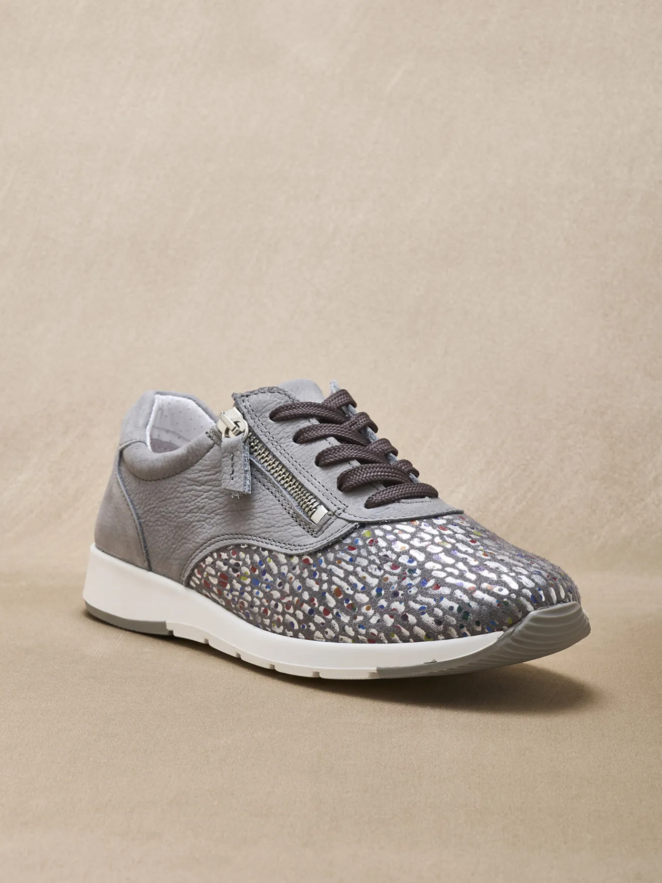 Fermées par lacet avec zip côté pour faciliter l’enfilage. Bourrelet de confort autour de la cheville. Talon des derbies zip et lacets : 2,5cm environ.