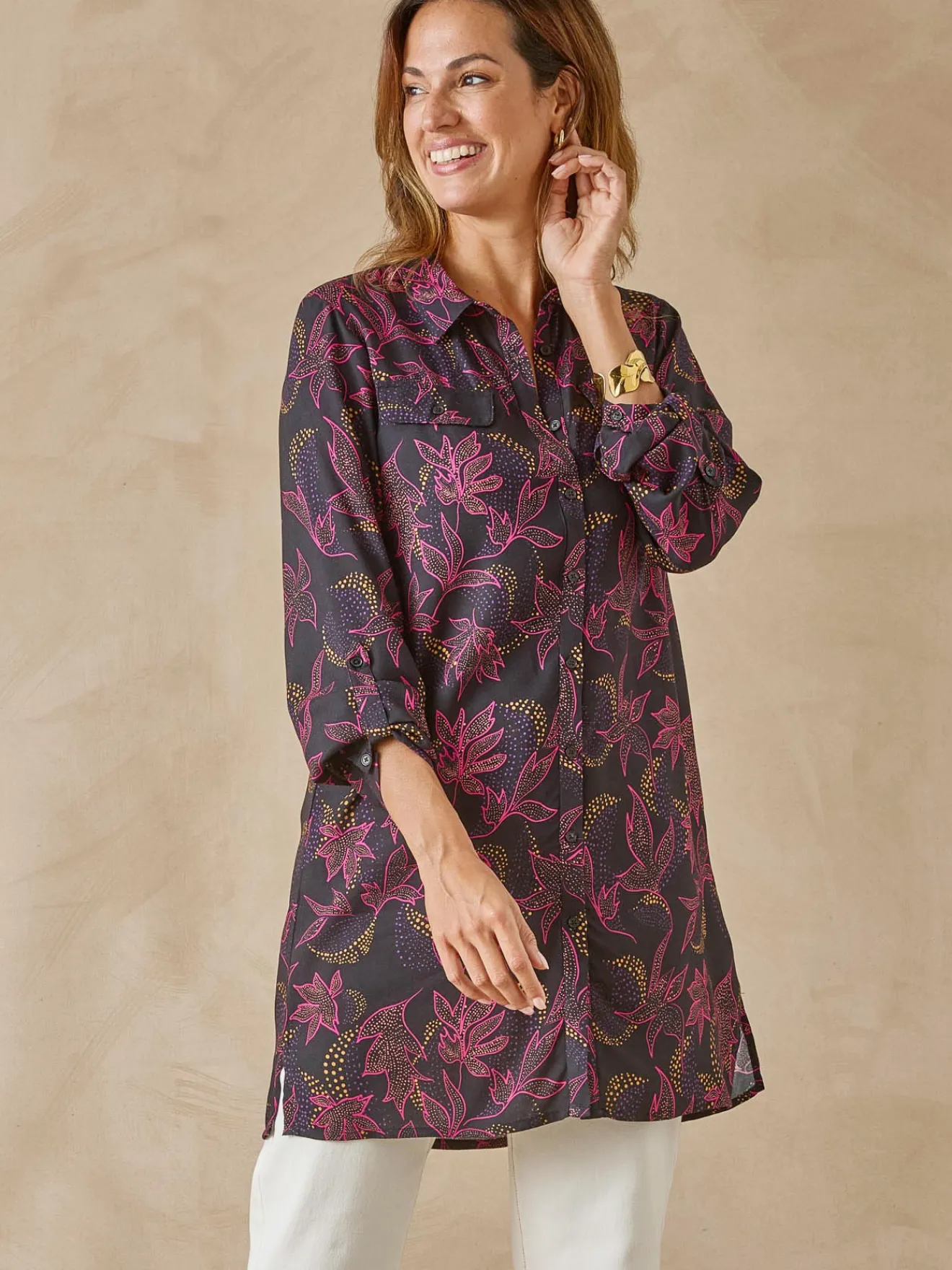Une belle longueur et des fentes côtés qui vous permettent de porter ce chemisier tunique imprimé sur un jean slim ou un legging pour composer une tenue actuelle et facile à vivre.