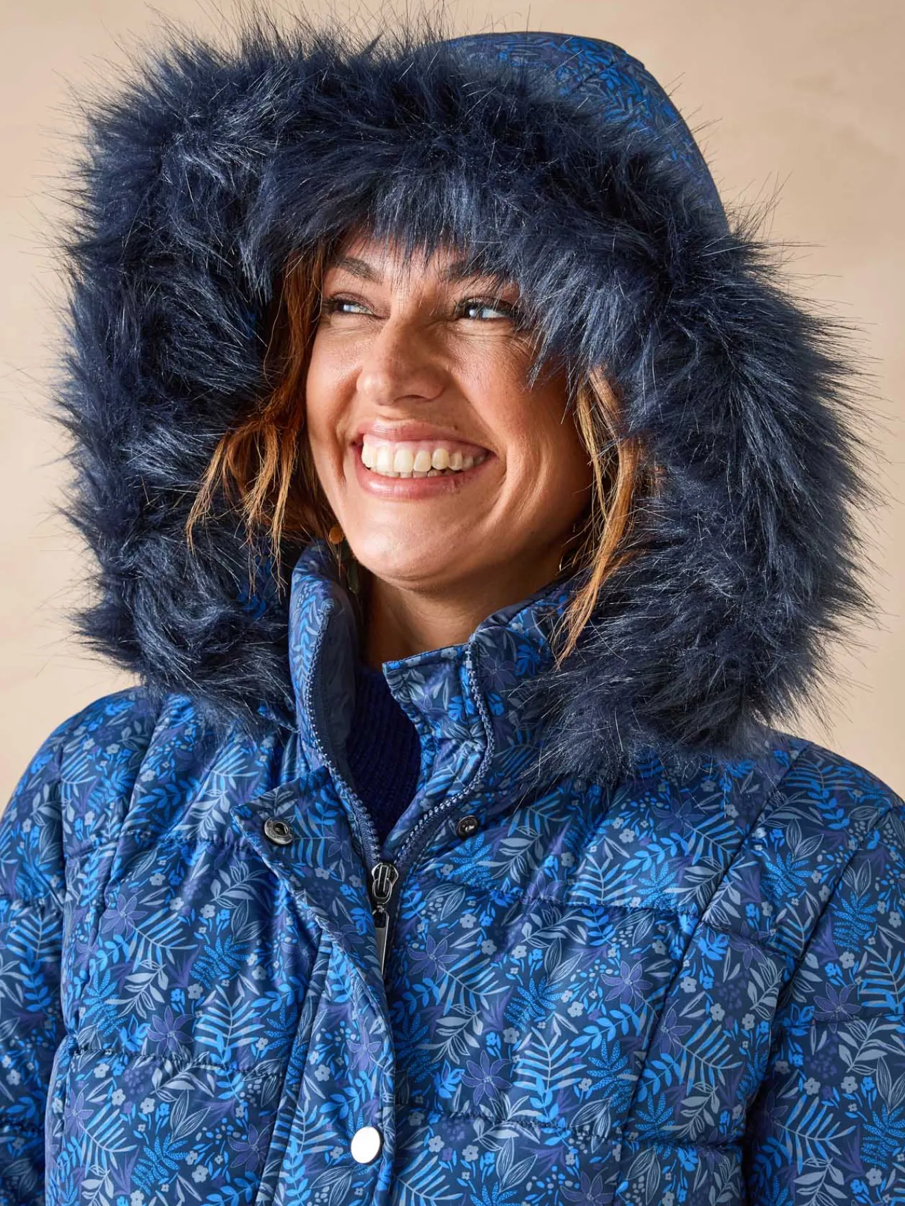 Cette parka imprimée femme est conçue pour s’adapter à toutes les morphologies : petites et grandes tailles.