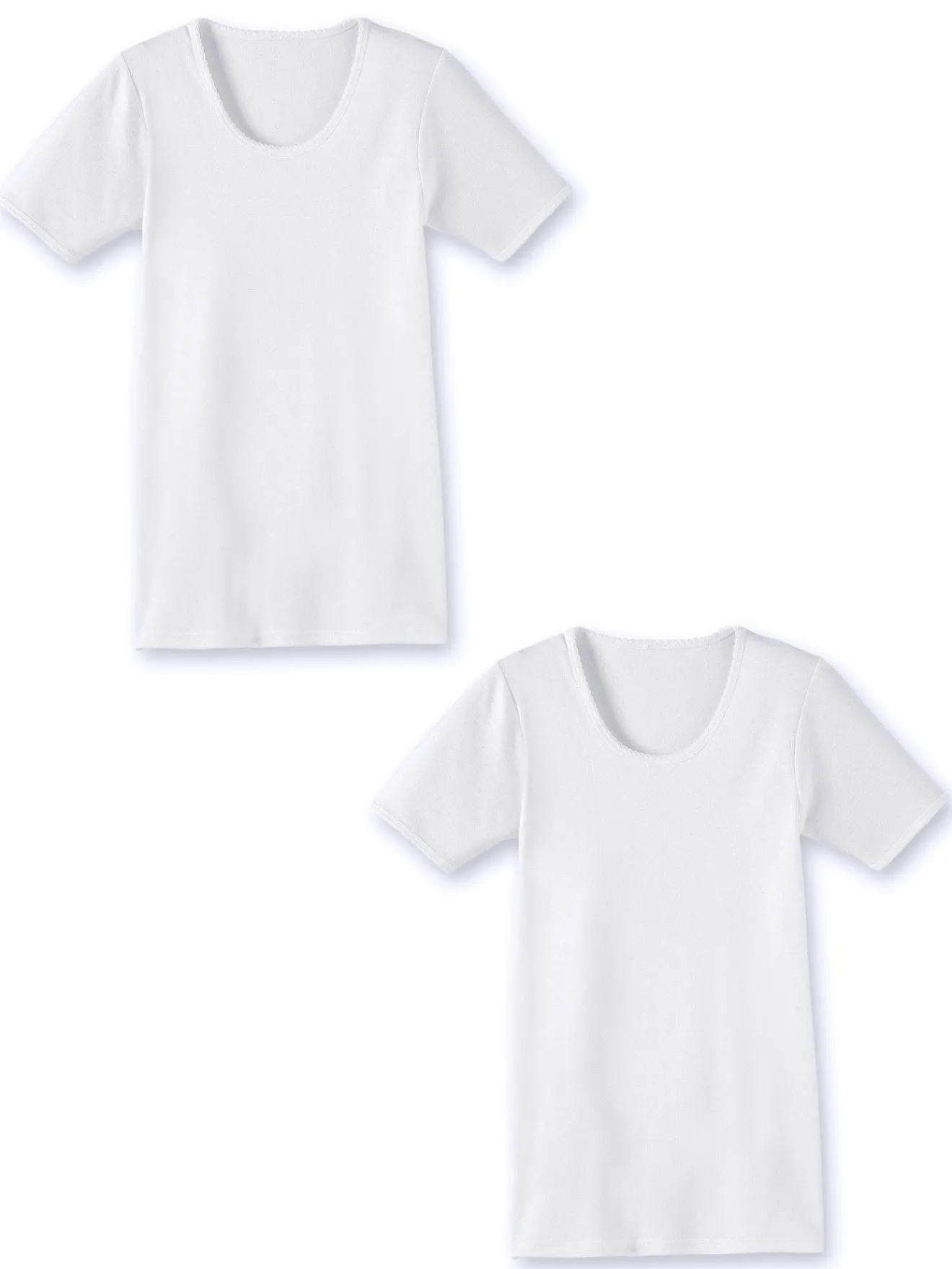 Coupe longue et bien couvrante. Finition picot à l’encolure. Manches courtes. Base ourlée.