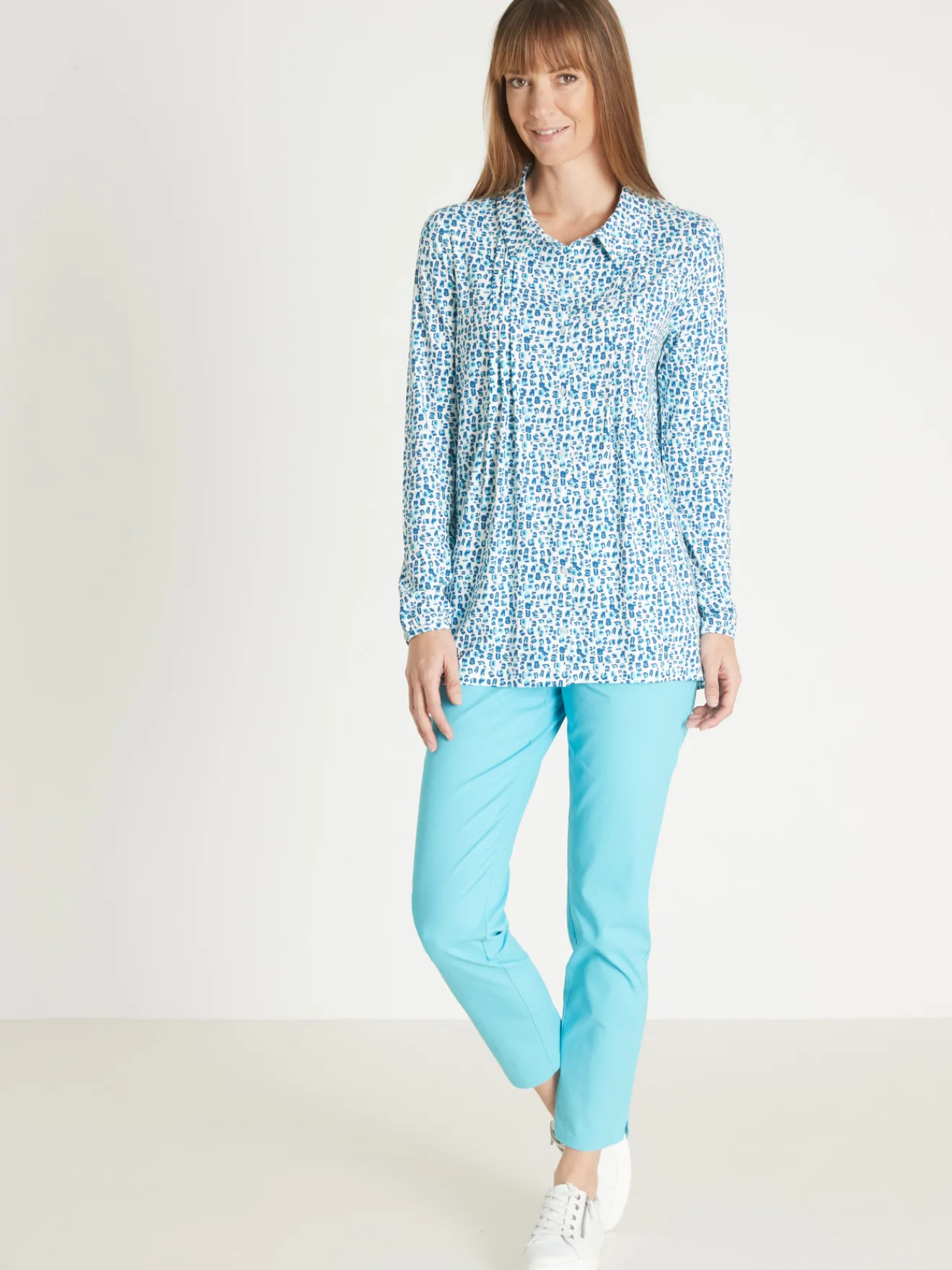 Longueur de ce chemisier à plis : 70 à 75cm selon les tailles.