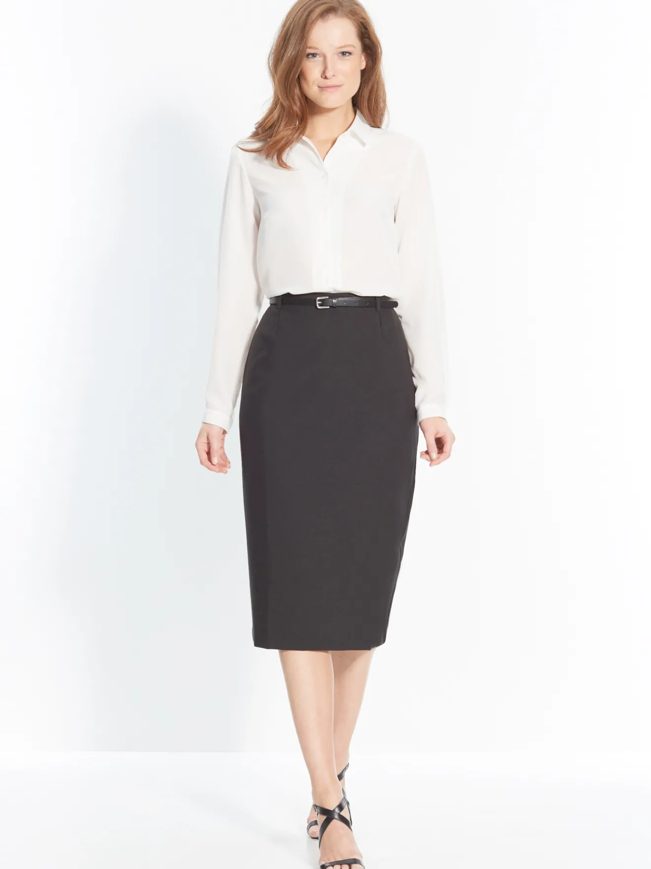 On a toujours besoin d’une jolie jupe droite dans la garde-robe ! Optez pour ce modèle coupé dans un tissu ultra-confortable, indéformable et infroissable.
