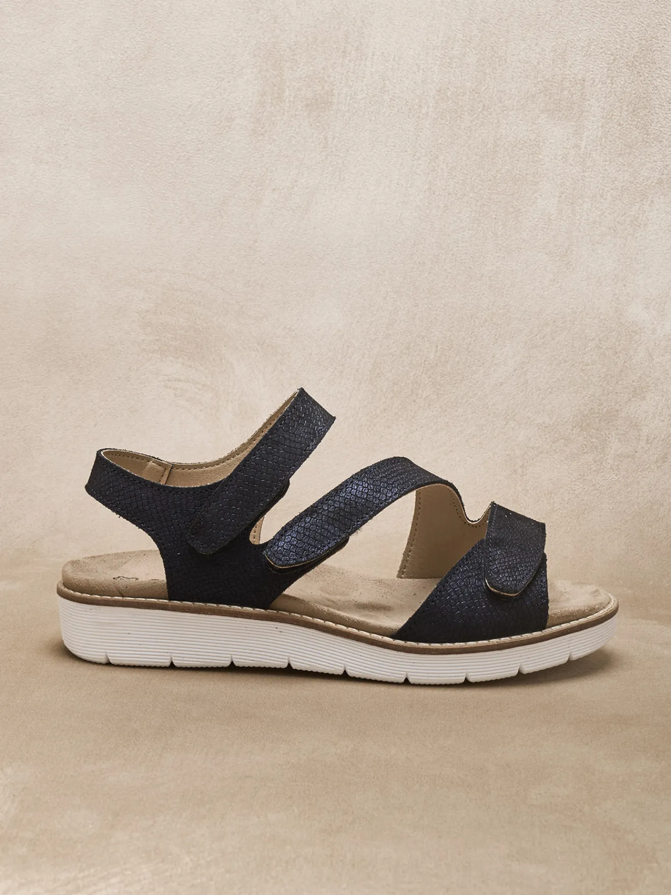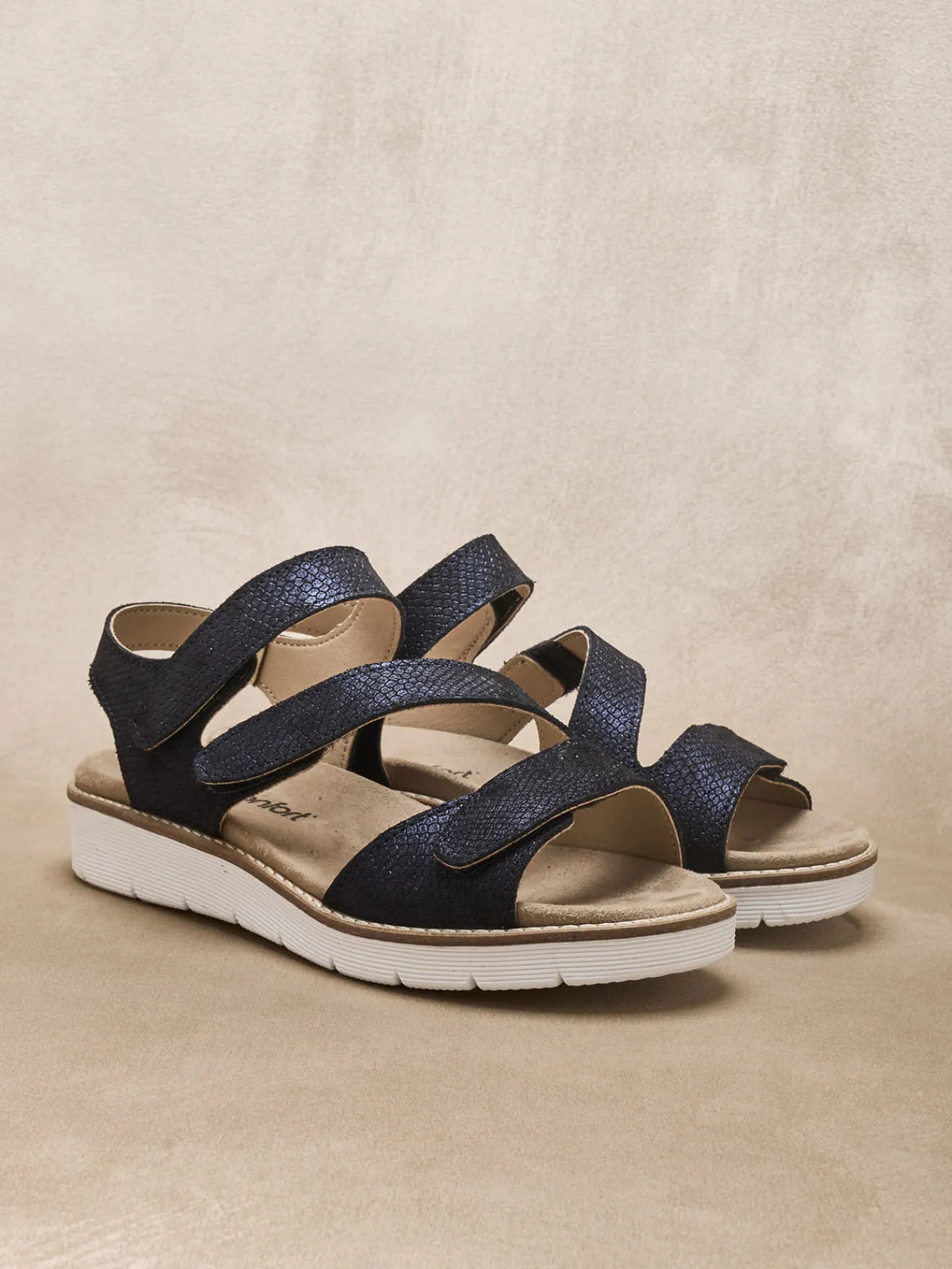Largeur confort pour ces sandales ouverture totale femme, une largeur étudiée pour offrir un confort supérieur aux pieds plus exigeants.