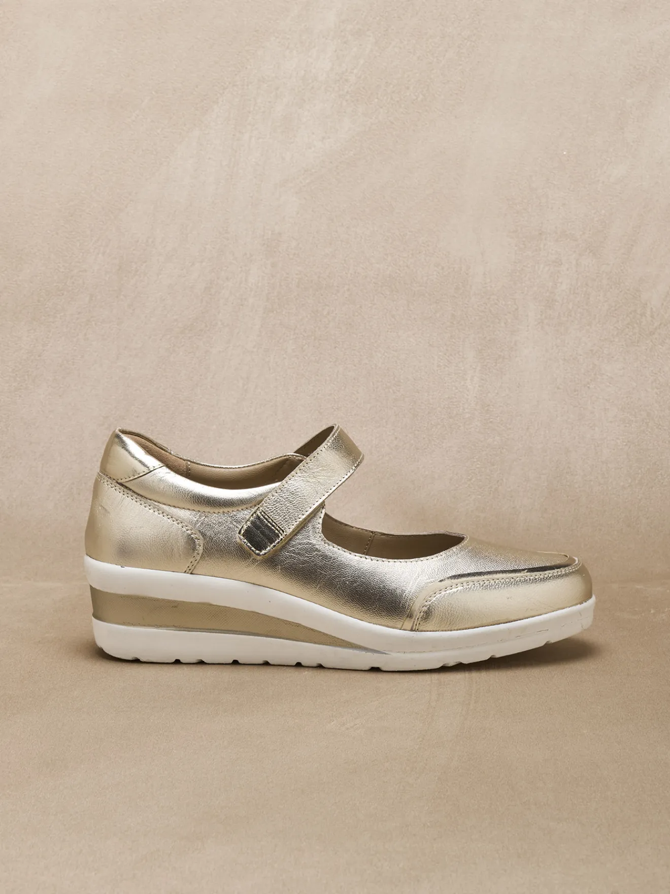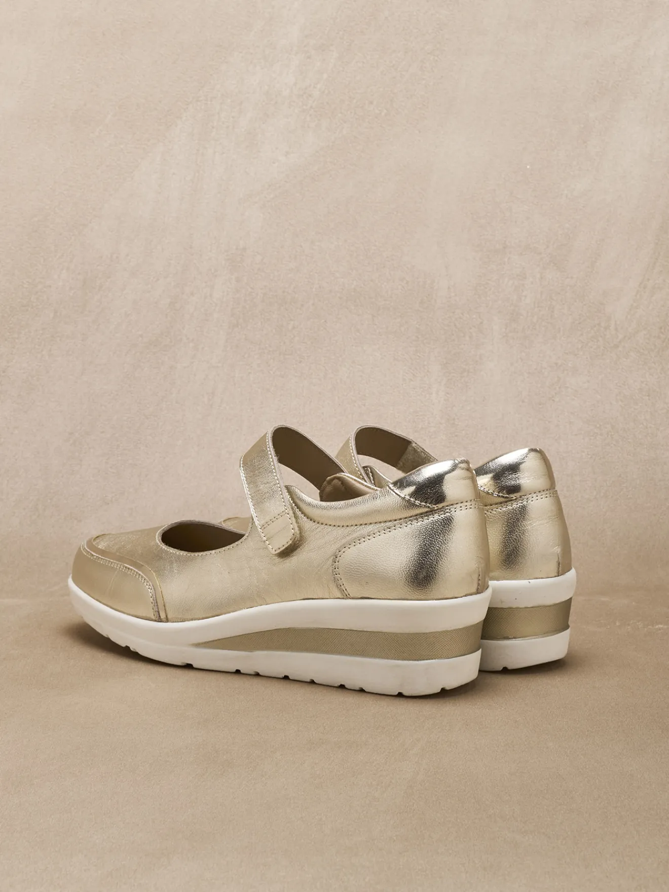 Et si vous mettiez une touche d’éclat à vos pieds avec ces babies dorées PEDICONFORT® ? Elle jouent le combo parfait du style et du confort, avec leur patte scratch permettant un ajustement quasi sur mesure au cou-de-pied.