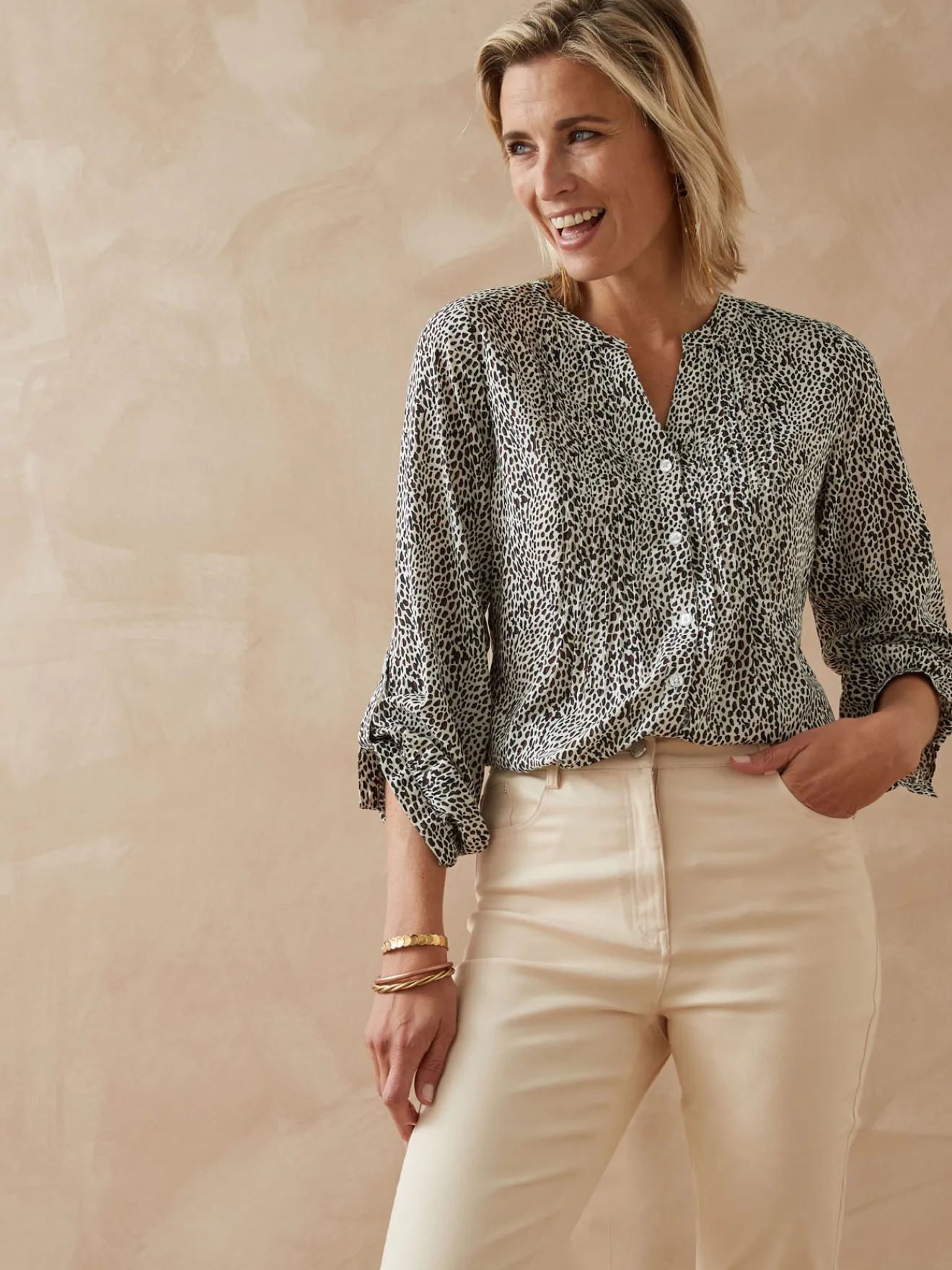 Ce chemisier tunique est conçu pour s’adapter à toutes les morphologies : petites et grandes tailles.