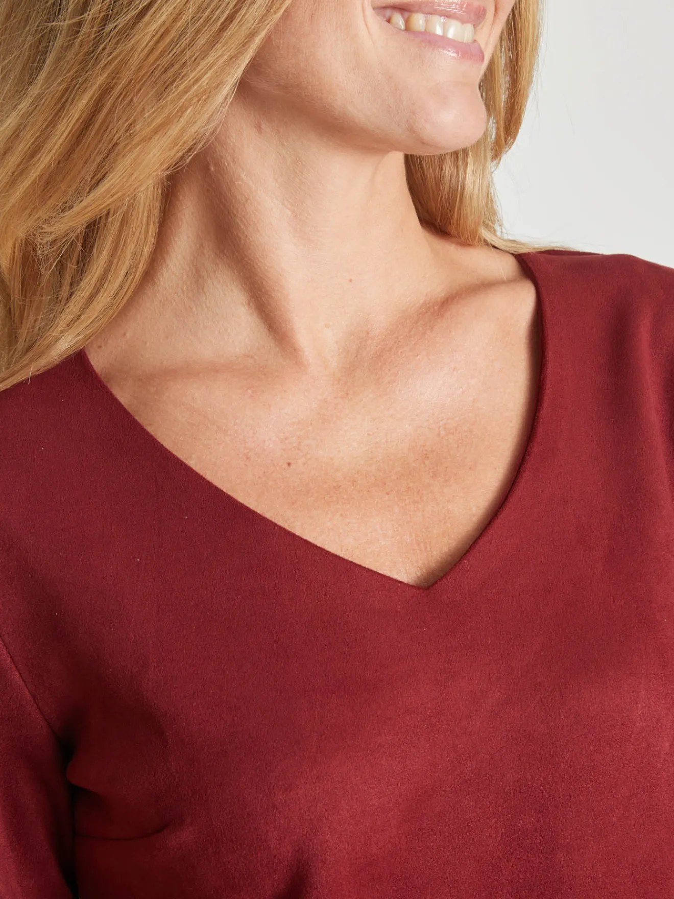 Cette robe maille suédine est conçue pour s’adapter à toutes les morphologies : petites et grandes tailles.