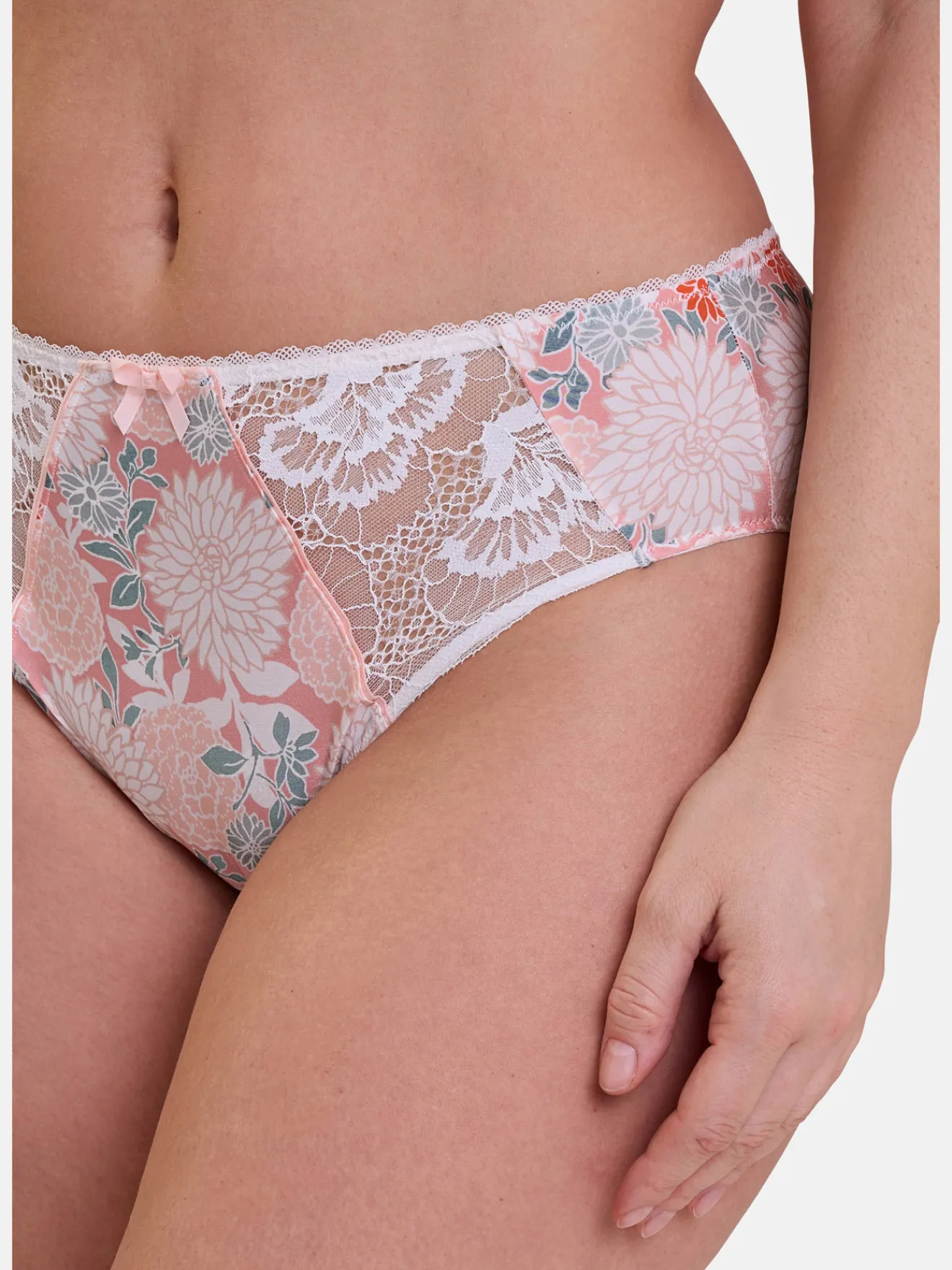 Découvrez le slip Aurélie SANS COMPLEXE, une fusion de dentelle délicate et de microfibre imprimée au motif floral. Cette dernière est ultra douce pour un maximum de confort au porté