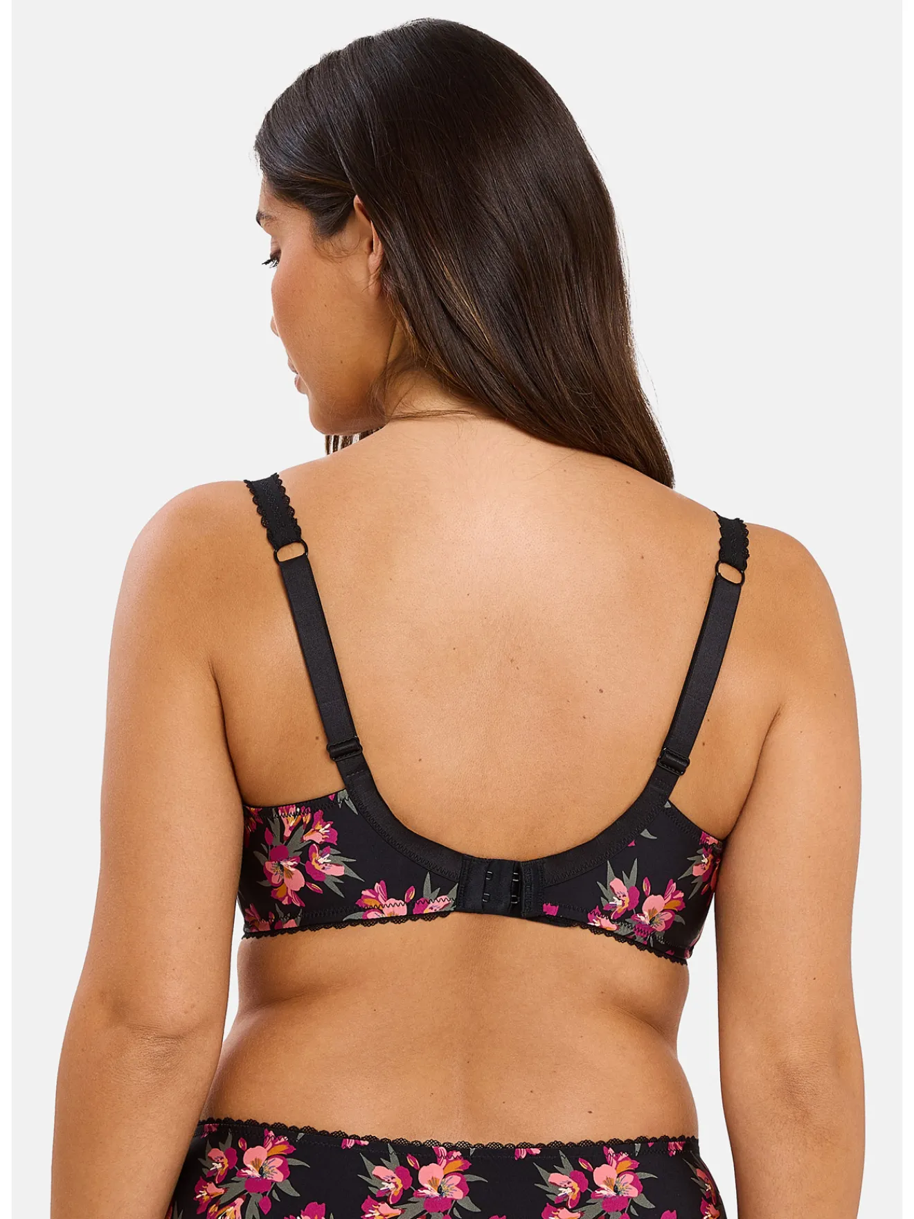 Découvrez le soutien-gorge Oriane SANS COMPEXE, la fusion parfaite entre dentelle délicate et microfibre imprimée au motif floral.