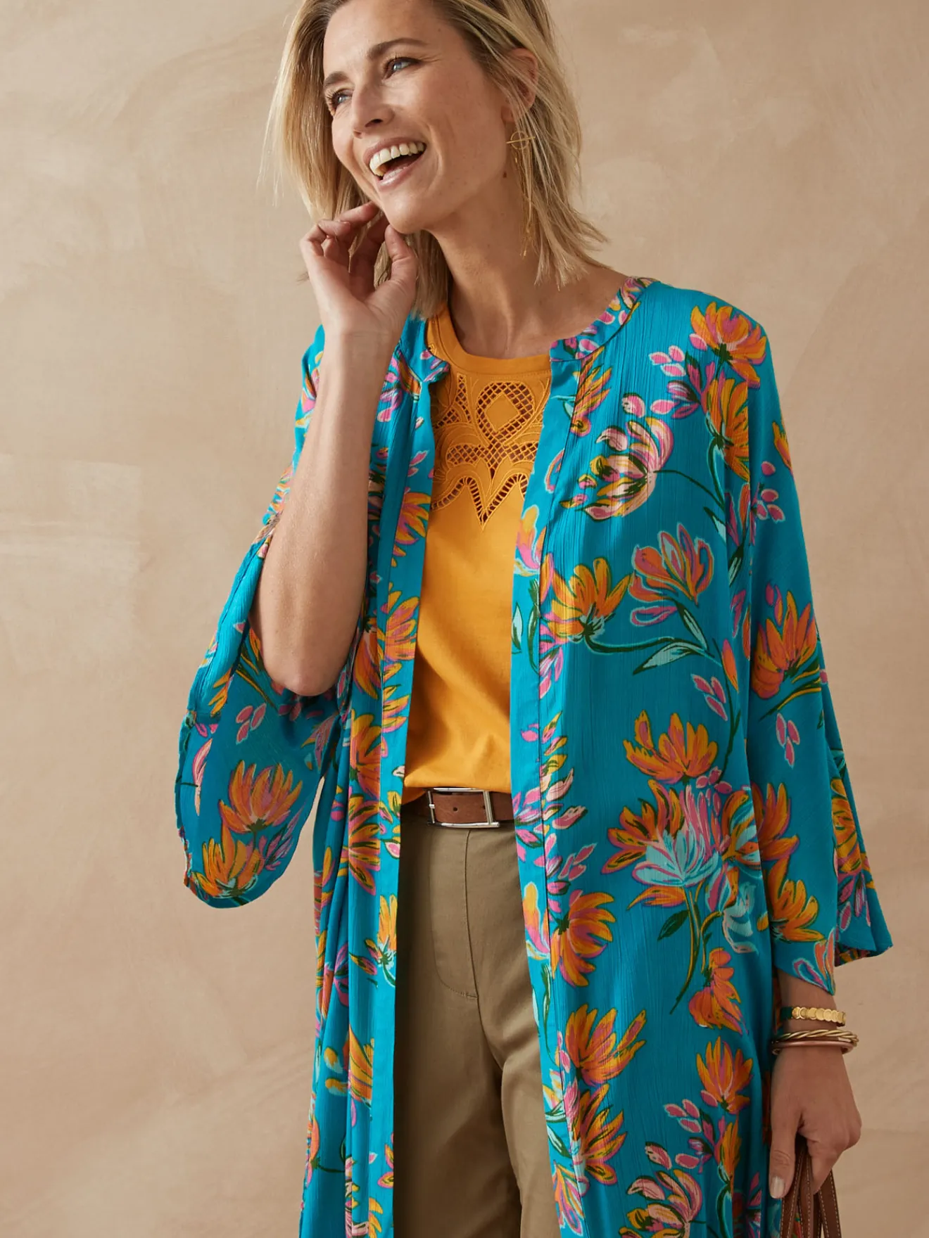 Cette surchemise en crêpe se porte sur un tee-shirt ou un débardeur unis. Avec ses manches kimono, elle donne du caractère à votre look !
